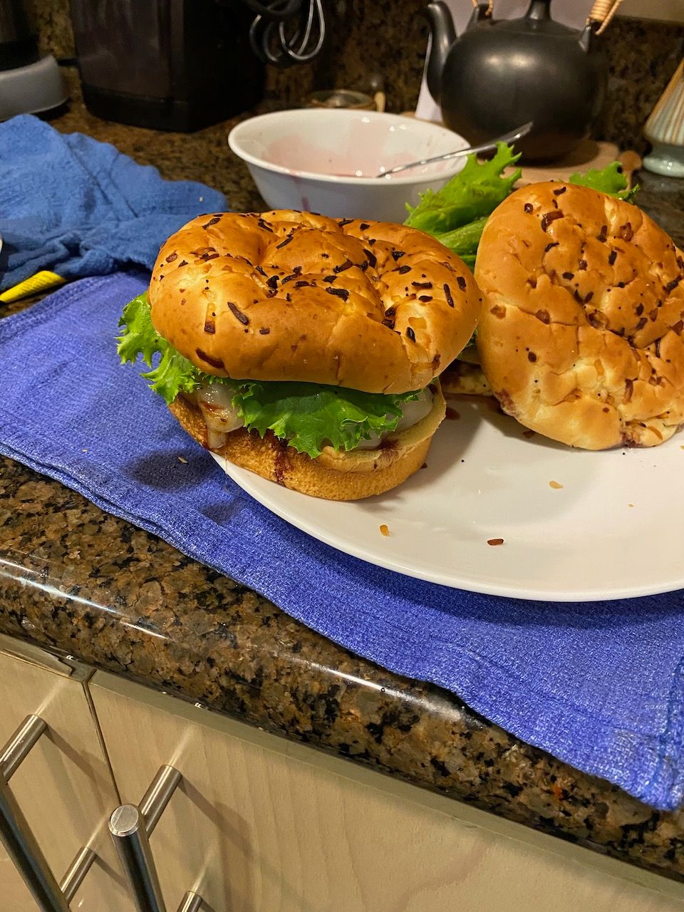 Next I tried my hand at smash burgers. They were good, but I didn't know how to tell when they were done at first, so they tended to be pretty rare. People don't generally tell you how to tell when meat is done. You can constantly check with a thermometer, but that's a pain and a smash burger is so thin, ideally, that it can be hard to get a read without touching the pan (FYI, you can use a thermometer probe, but when the blood starts to come out of the top of the burger it's getting close to medium). I also got into sautéing onions at this point, and even tried making a red wine reduction sauce with the onion juices which is to die for (add some rosemary for a bit of an extra kick). I recommend it.