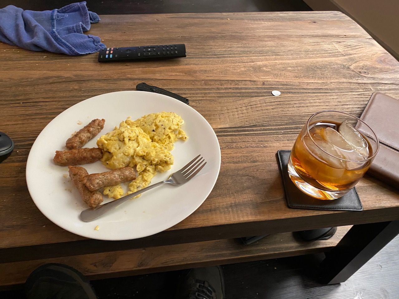 I started making scrambled eggs and chicken sausage (frozen) for breakfast. I recommend the sausage with a tiny little bit of maple syrup for dipping. It's delicious, and probably super bad for you, but it’s so good.